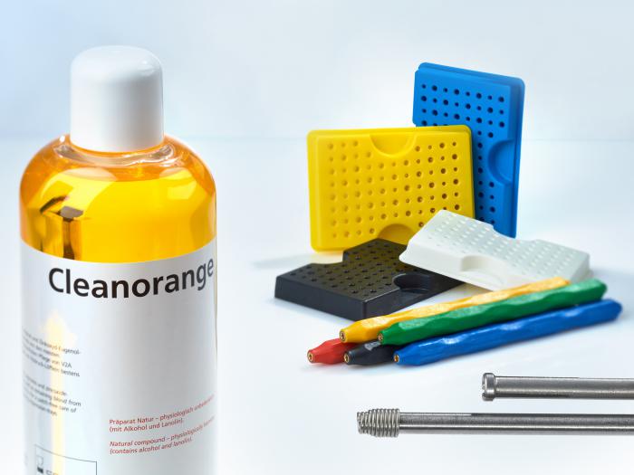 Cleanorange elimina eficazmente silicona, alginatos, pastas de zinc-eugenol, restos de sangre y manchas. También es apto para la limpieza de superficies de acero y cubetas de impresión.