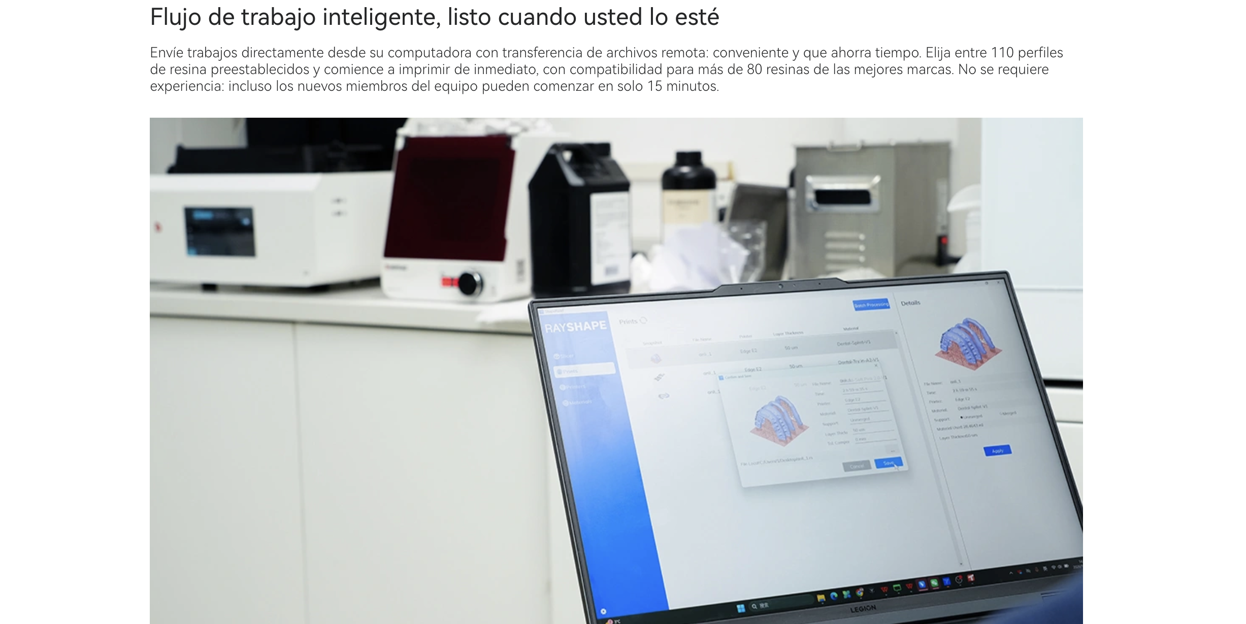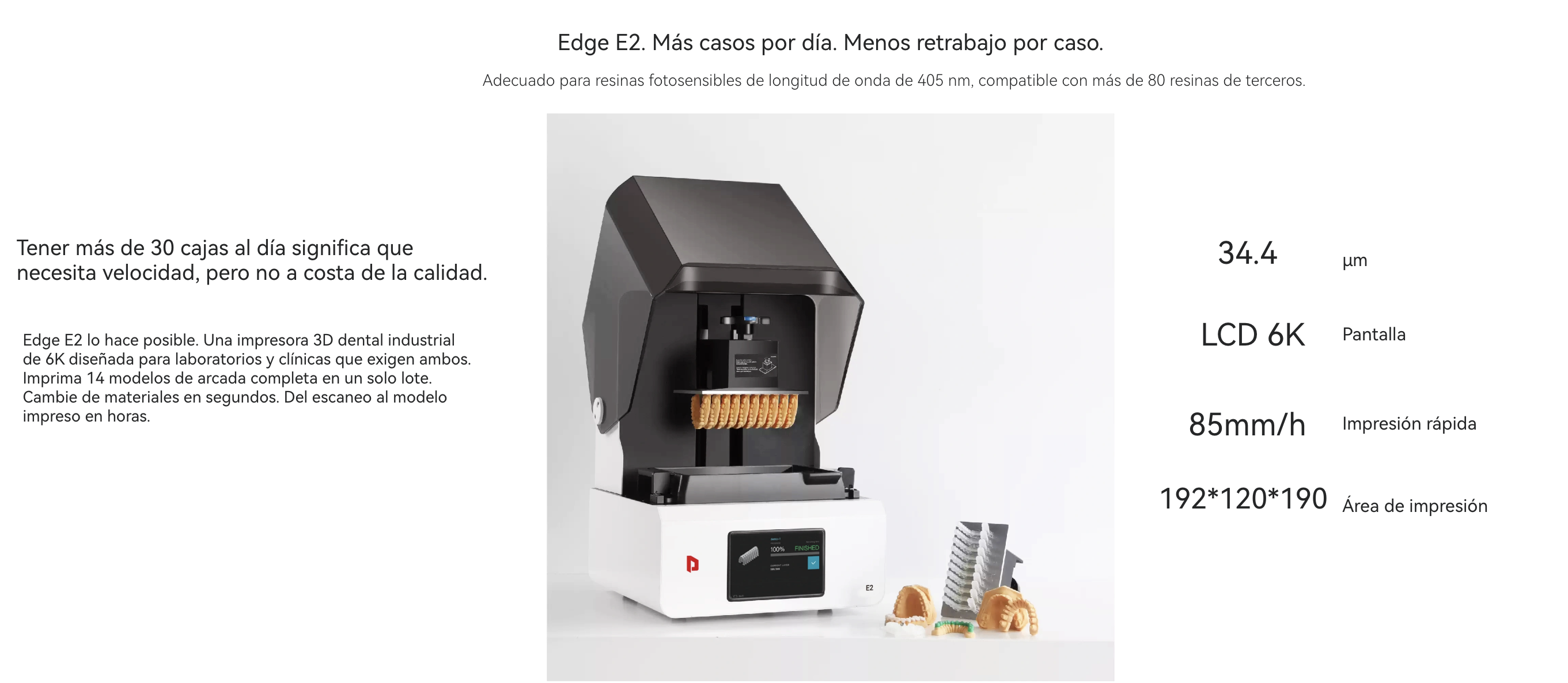 Adecuado para resinas fotosensibles de longitud de onda de 405 nm, compatible con más de 80 resinas de terceros.