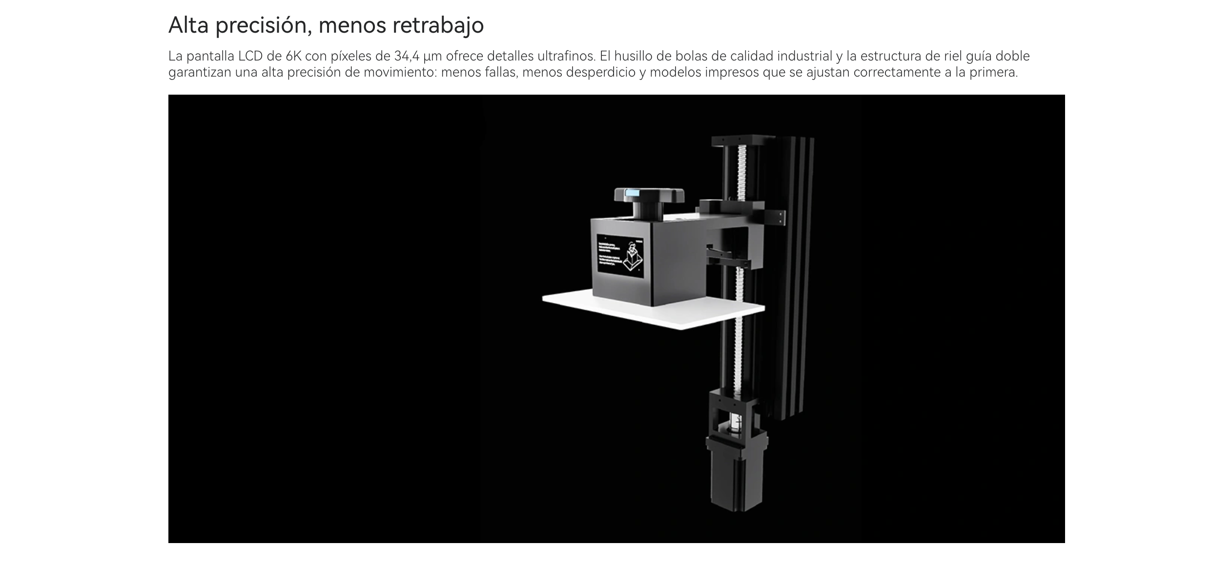La pantalla LCD de 6K con píxeles de 34,4 μm ofrece detalles ultrafinos. El husillo de bolas de calidad industrial y la estructura de riel guía doble garantizan una alta precisión de movimiento: menos fallas, menos desperdicio y modelos impresos que se ajustan correctamente a la primera.